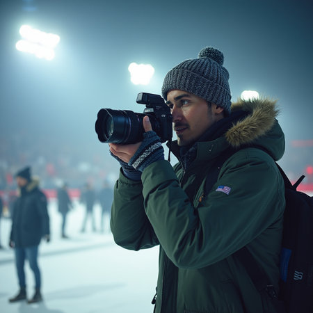 Professional Sports Photographer with Telephoto Lens Captures the Action at a Stadium Event