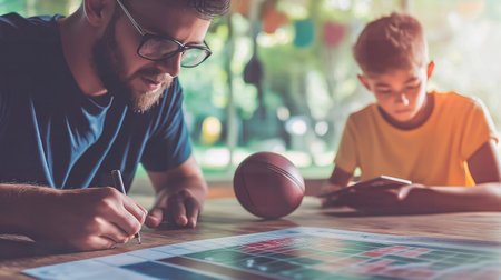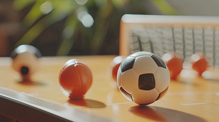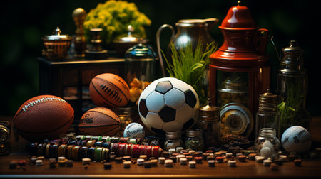 Close up of sports equipment and game pieces representing player and gameplay, ideal for topics related to sports, gaming, and competition.