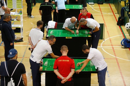 Palma de Mallorca, Spain - October 27, 2018 - Subbuteo players during the table soccer World Championship in Mallorca