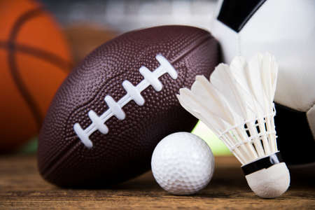 various sports balls and shuttlecock