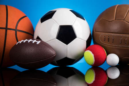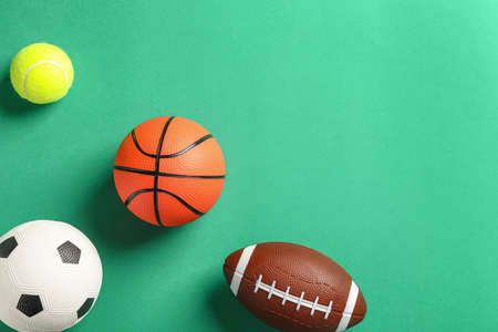 Sports balls on color background