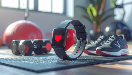 Digital overlay of a health tracker shows heart rate and activity metrics for fitness monitoring in a soothing aesthetic.