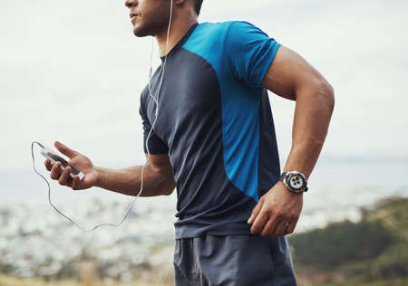 Hes got the perfect track for running. Cropped shot of a young man running outdoors.