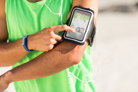 fitness set: fitness watch, heart rate monitor, pedometer, earphones, smartphone and arm case for smartphone