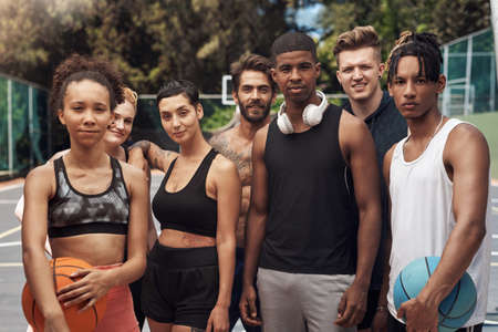 Basketballers by nature. Portrait of a group of sporty young people standing together on a sports court.
