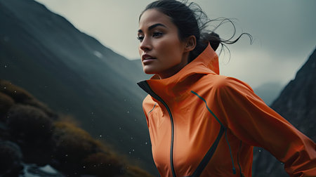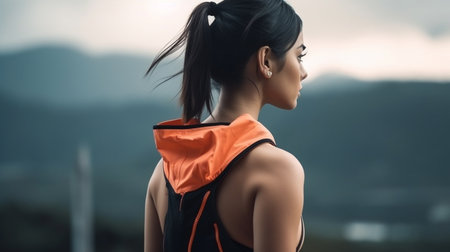 Mountain Bliss: Captivating Full Body Portrait of a Sportswoman Embracing Fresh Air