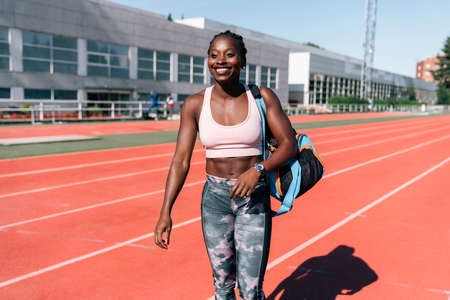 Athlete sprinter walking with training bag