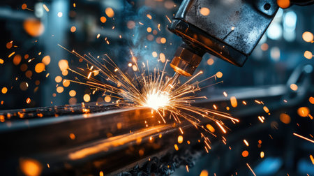 Detail of heavy industry manufacturing, sparks come out of a metal working welder.