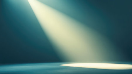 A spotlight shines down on a textured surface, creating dramatic light rays and bokeh effects