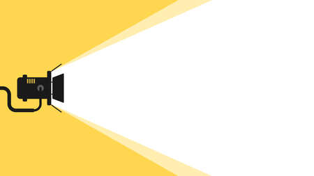 Spotlight is glowing on wall. Spotlight black silhouette icon with light scattered rays. Spotlight shining on cinema background. Cinema background with place for text. Template for banner, poster