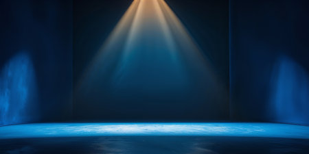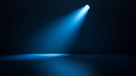 Vibrant blue spotlight casting light on dark stage, creating dramatic contrast