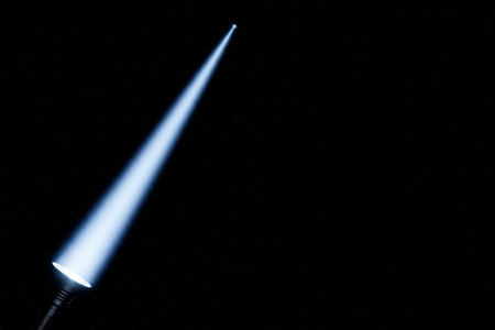 The beam of a flashlight illuminates the darkness of space. Space for text
