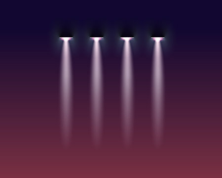 four spotlights on a stage with light source.