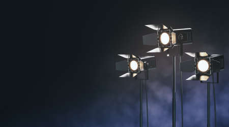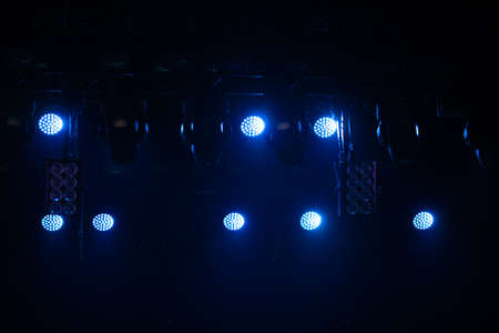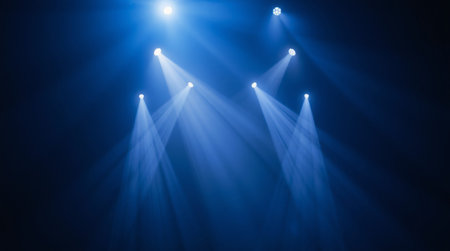 Stage spotlights on a dark blue background. The stage is illuminated with spotlights.