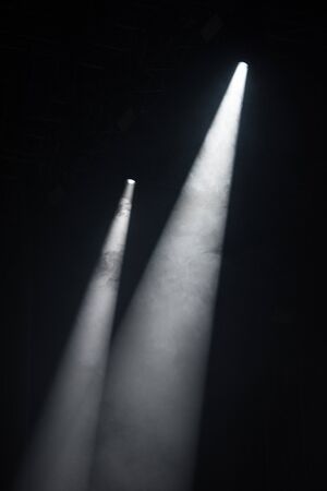 Light from the spotlights on the stage in a dark room illuminated by the spotlight