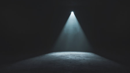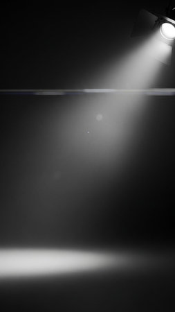 A dramatic spotlight shines in a dark environment, creating a striking contrast that evokes creativity and inspiration for various artistic projects.