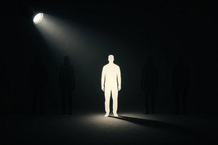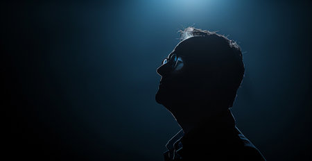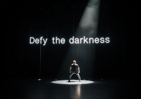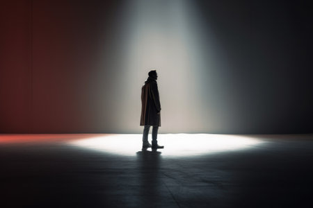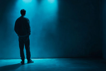 A person stands alone in a spotlight, contemplating emotional burdens and inner struggles