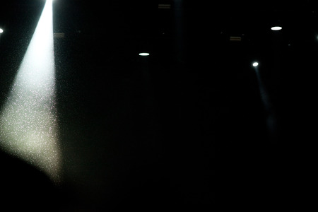 Light from the spotlights on the stage in a dark room illuminated by the spotlight