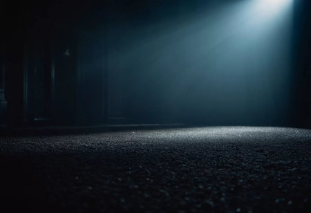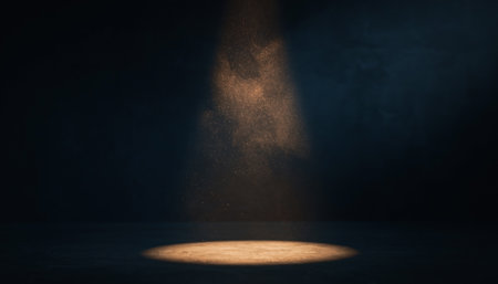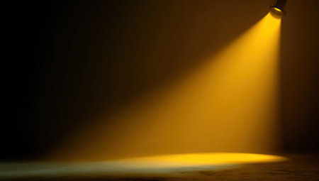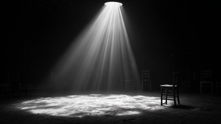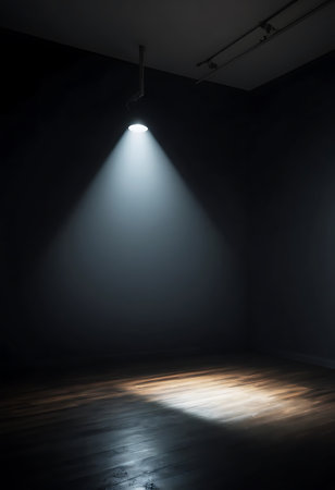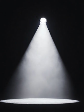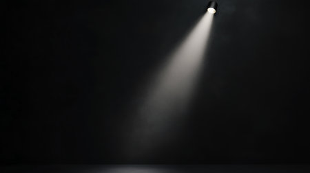 Dramatic spotlight illuminates dark space with striking contrast and depth