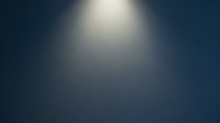 Textured showing soft spotlight beam illuminating a dark navy blue gradient background with subtle texture and light...