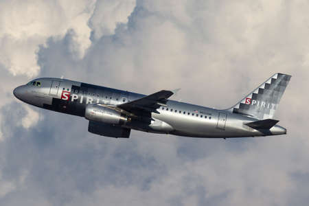 Las Vegas, Nevada, USA - May 8, 2013: Spirit Airlines Airbus A319 regional airliner aircraft taking off from McCarran International Airport in Las Vegas.