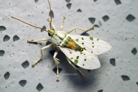 Visualize a close-up of a unique insect within a natural habitat, illustrating the small wonders in nature --chaos 30 --ar 16:9 --v 6.1 Job ID: 7ea0a591-4214-4b0e-9f56-d57fdab80b4e