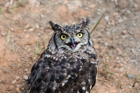 Beautiful portrait of a great horned owl (Bubo bubo)