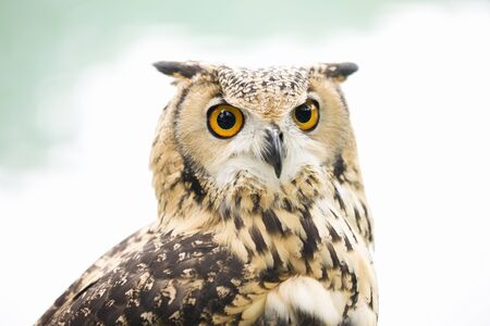 Beautiful big eagle-owl portrait. Predator bird portrait