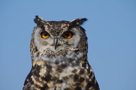 Cape Eagle Owl with large round orange eyes and beautiful feathers