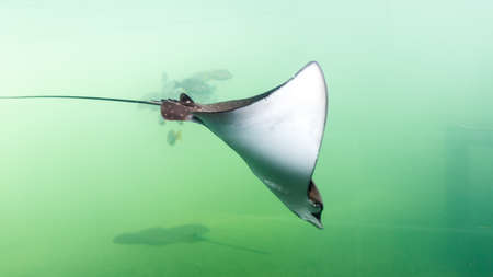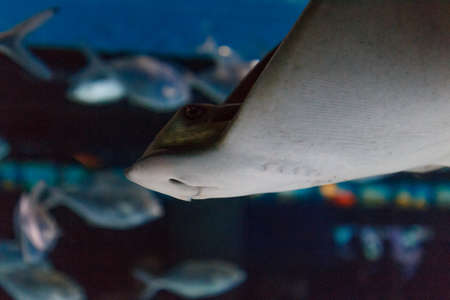 Tropical ray fish swimming in clear aquarium