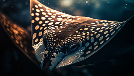 This stunning image captures the intricate details of a stingray, showcasing its smooth body and unique color patterns. Perfect for ocean and wildlife themes.
