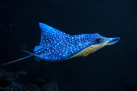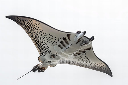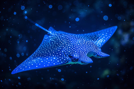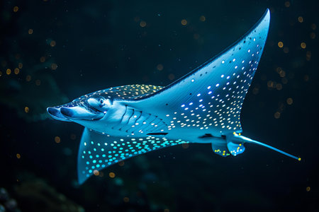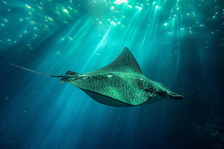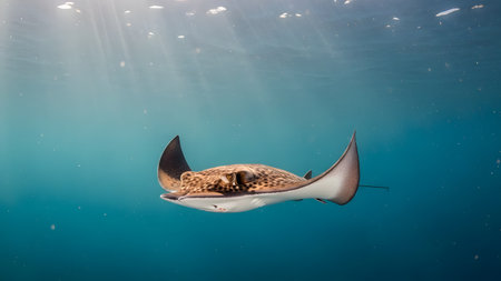 Majestic spotted eagle ray gliding gracefully through ocean waters.