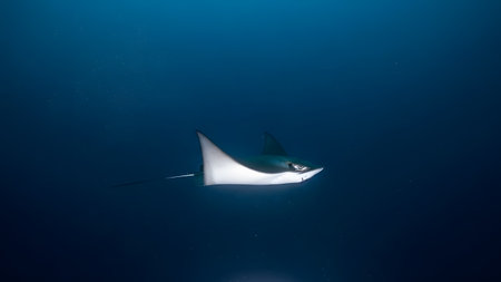 Manta ray swimming in the blue water