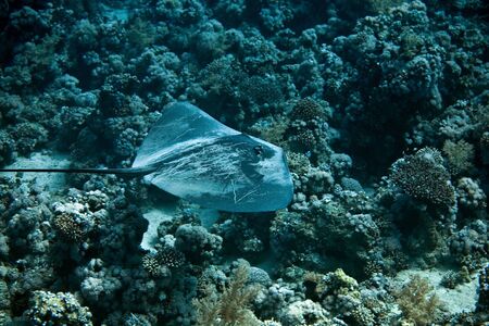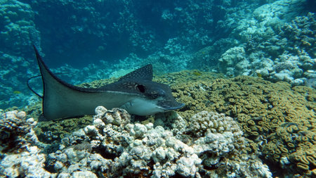 A stingray swimming on a coral reef in Bali, Indonesia