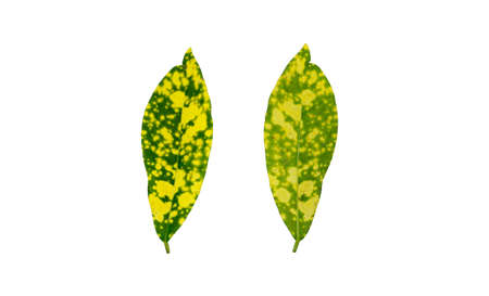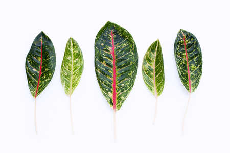 colorful croton leaves isolated on white background ( Codiaeum variegatum ) with clipping path included.