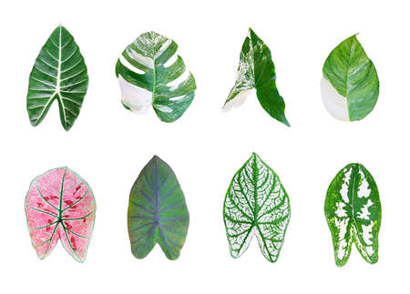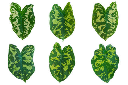 Set of Colocasia Esculenta (Hilo Beauty) leaves isolated on white background