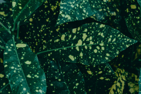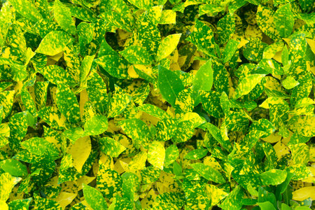Aucuba japonica or japanese laurel spotted leaves pattern background. Leaf texture background in Ubud Forest.