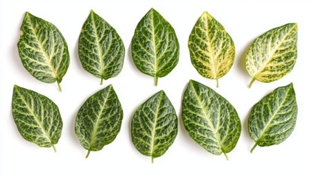 Multiple green leaves with intricate textures are arranged closely together showcasing their natural patterns and structure in a lush setting.