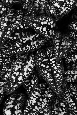 black and white abstract leaf background, beautiful plant pattern, space for text
