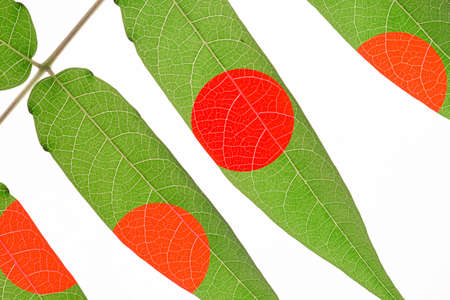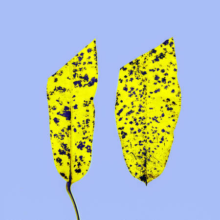 Multi colored textures leaves over white background. Flat Lay. Minimal surrealism background