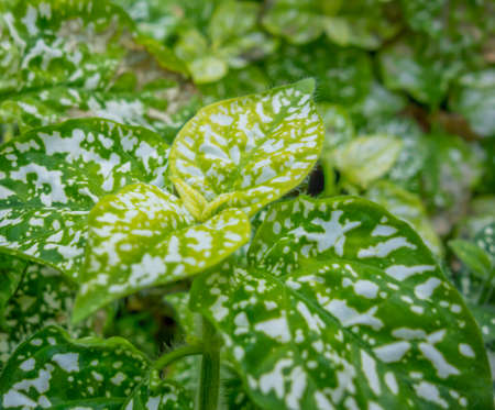 Common Lungwort (Pulmonaria officinalis). Summer Leaf Closeup