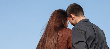 Couple in love. Cute relationship. Man and woman cuddle nature background. Supporting her. Family love. Devotion and trust. Together forever we two. Love story. Romantic relations. True love