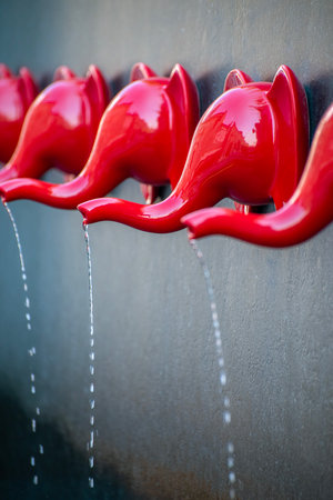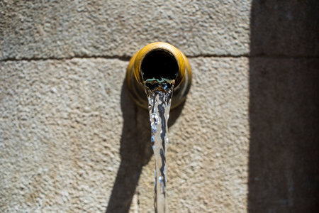 Water flow through art fountain tap in Lindenhof park in Zurich, Switzerland