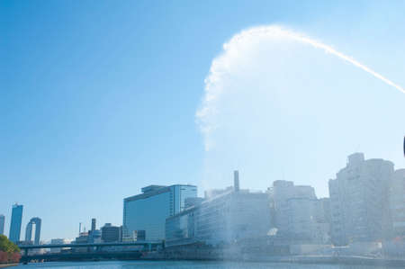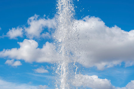 fountain jet of water high in the sky, high shutter speed freeze motion