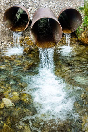 Crystal clear water gushes from two modern concrete outlets at a water treatment facility.