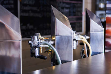 beer equipment close-up. Beer bar on international beer day. Brewing at home.Draught beer stores