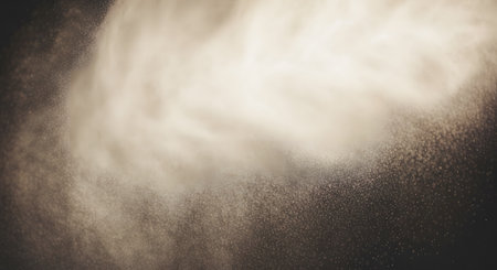Abstract design of powder cloud against dark background