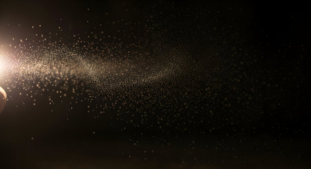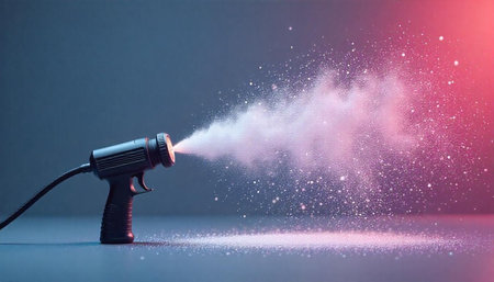 Black spray gun spraying a cloud of shimmering particles