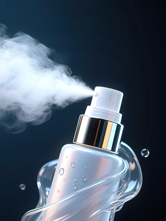 A facial mist bottle with a light spray effect, refreshing skincare product.