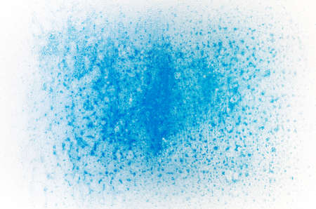 Abstract texture of splatters and blots of blue ink. Many spots and small dots.